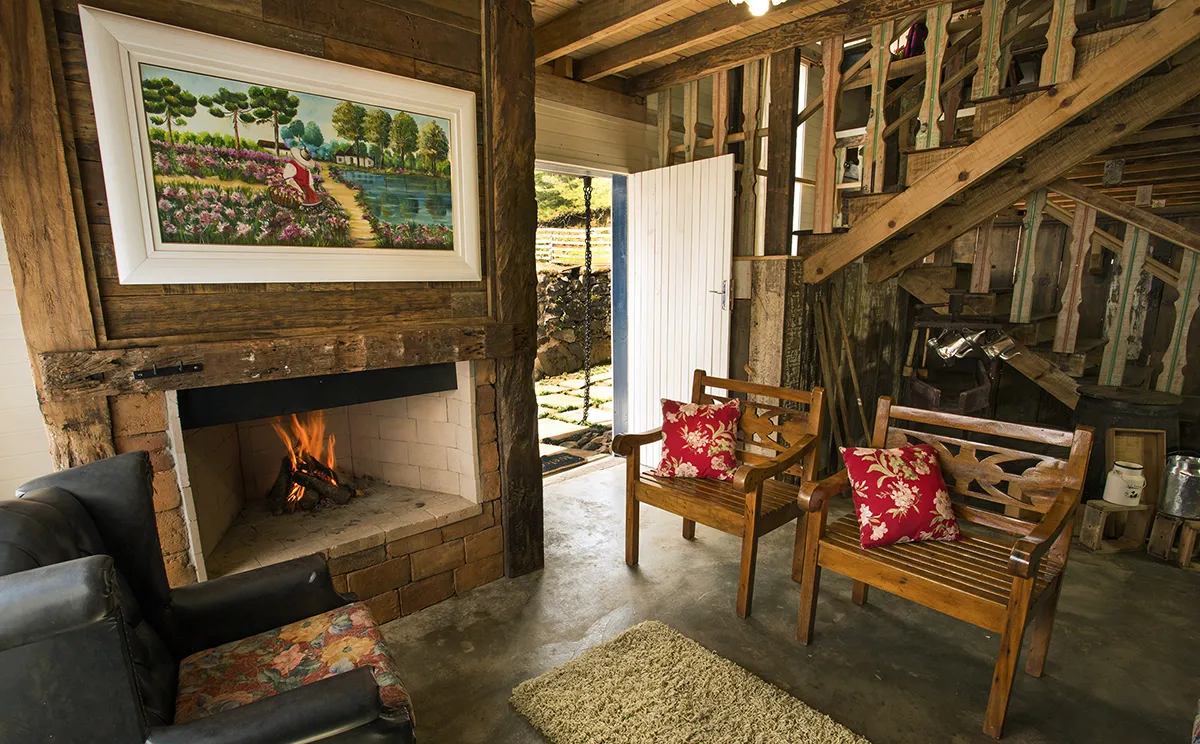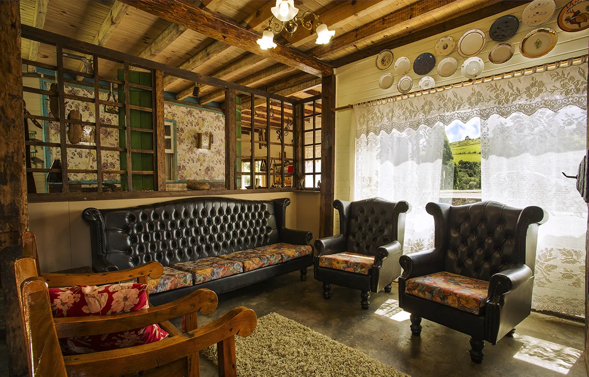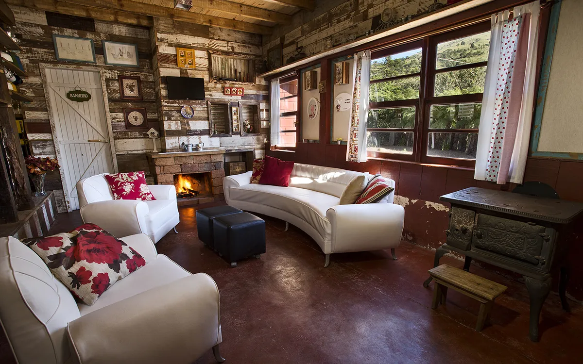 Casa Sítio para grupos e eventos (1 suíte, 3 quartos para casal, e 2 quartos coletivos, um com 17 leitos e outro com 15 leitos). Quanto aos banheiros, além da suíte, a casa conta com dois lavabos, um banheiro completo no térreo e um banheiro em cada quarto coletivo, sendo que em cada um, de forma privativa, tem dois vasos sanitários, dois chuveiros e duas cubas; o que totaliza, na casa toda: 10 vasos sanitários e 8 chuveiros. Como a casa acomoda grupos, recebe no mínimo 10 pessoas e no máximo 40 pessoas. Para grupos, até 100 pessoas.