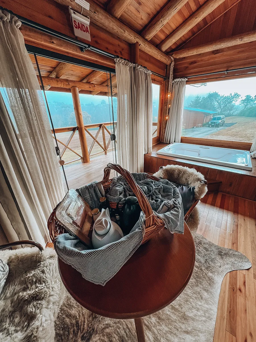 Recepção, café da manhã maravilhoso com ítens artesanais, cama maravilhosa e quentinha com o lençol térmico (pegamos uma noite com -1°C e nem percebemos kkkkk)